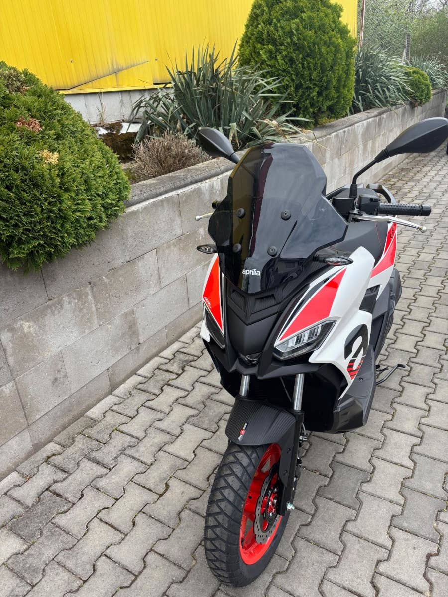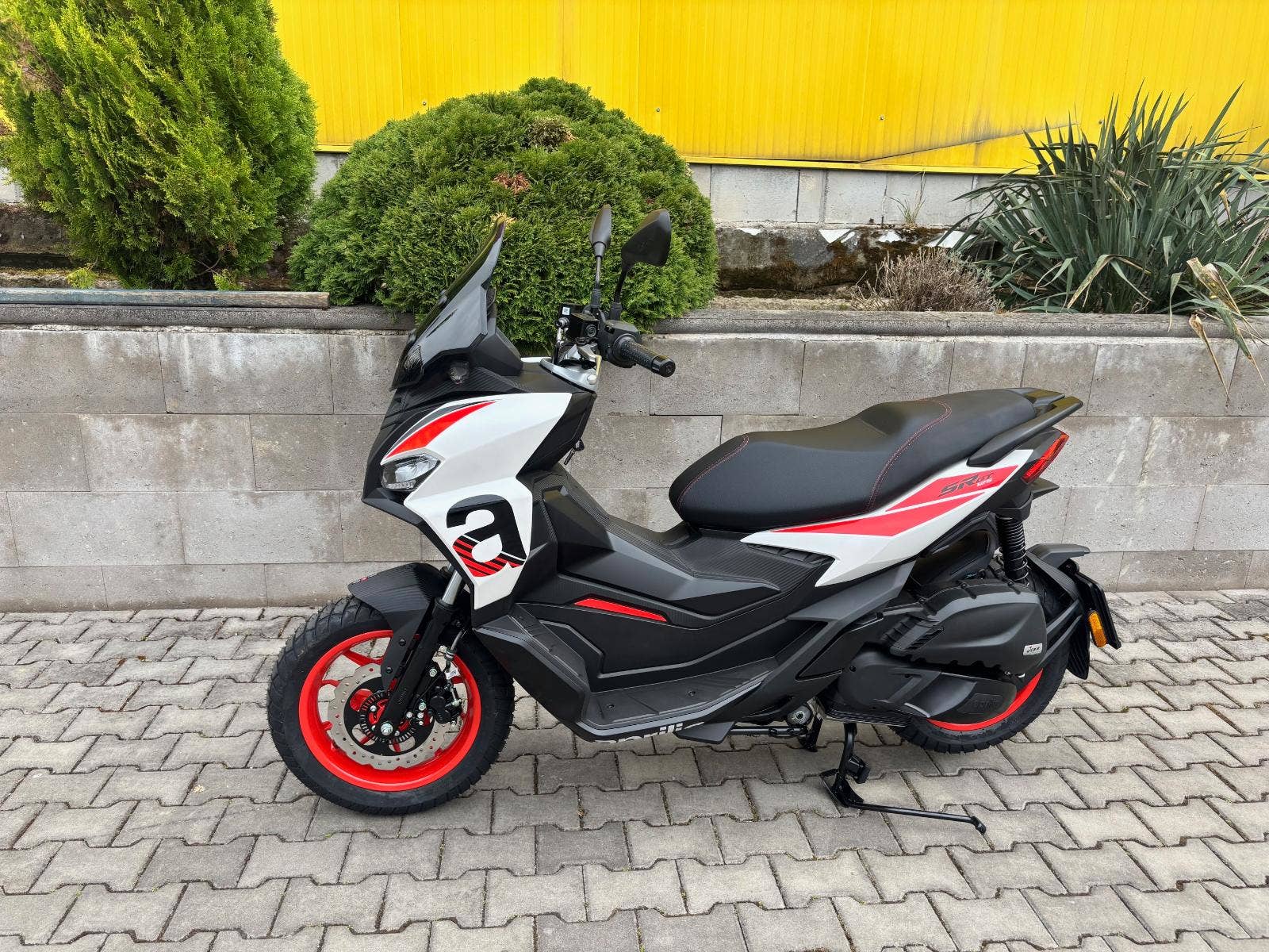 Předváděcí skútr Aprilia SR GT 125 s nízkým nájezdem kilometrů. Verze S v bílé barvě s červenými nálepkami. První registrace a začátek záruky 3/2025. Záruka do 3/2027.
