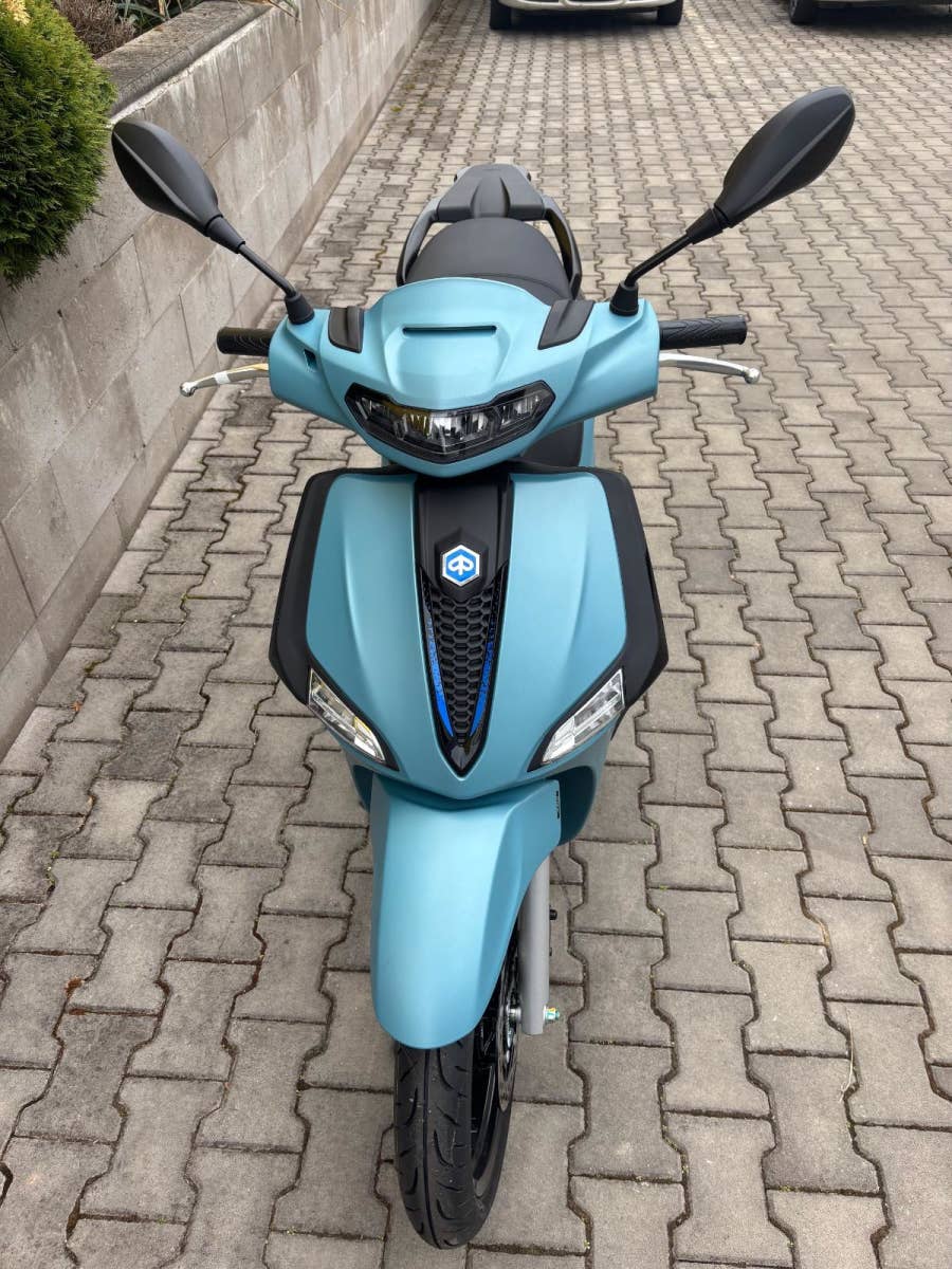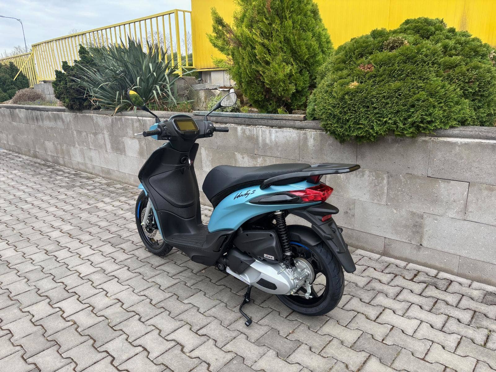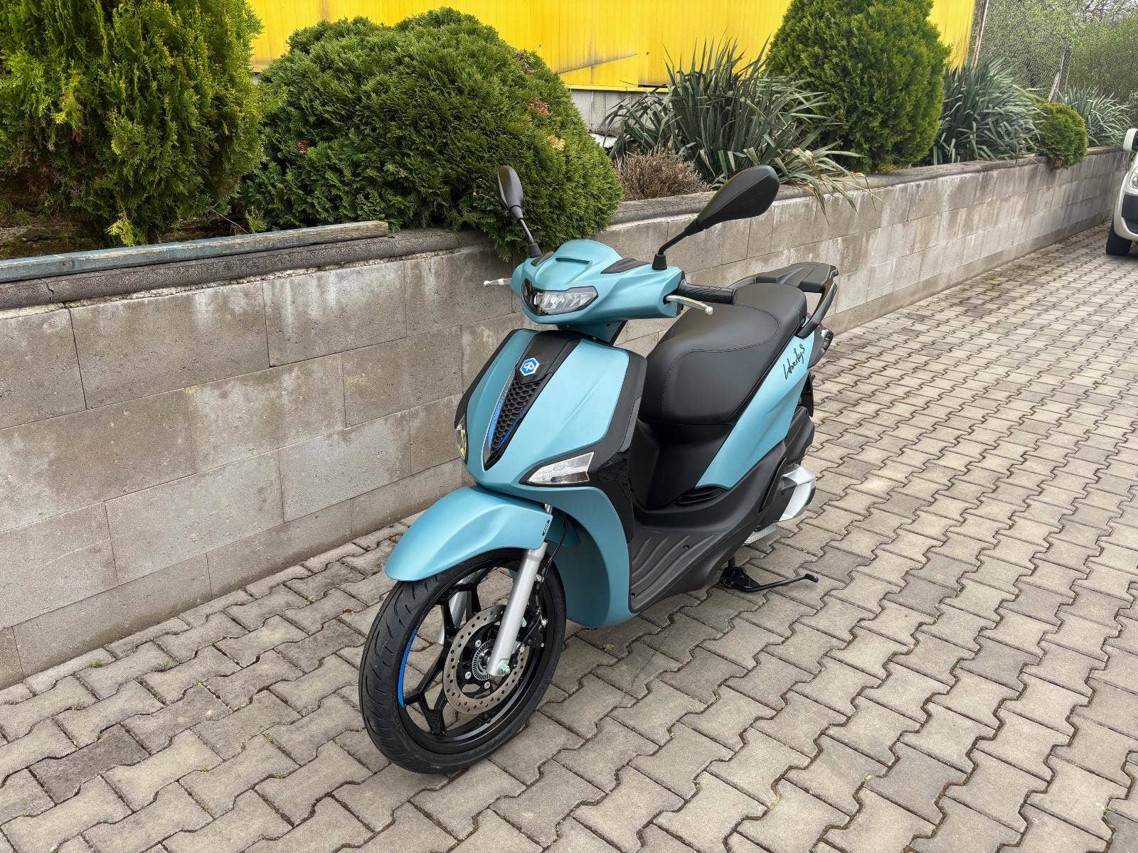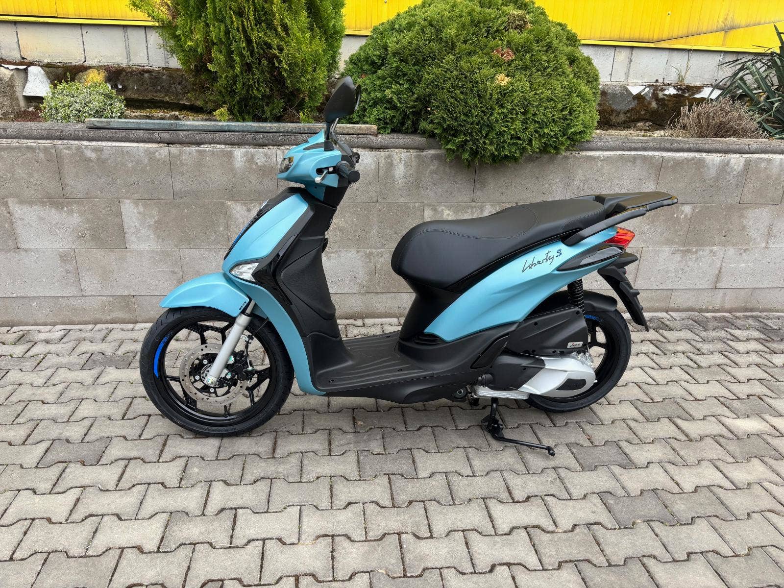 Předváděcí skútr Piaggio Liberty 125 s nízkým nájezdem kilometrů v modré matné barvě, verze Sport. První registrace a začátek záruky 4/2025. Záruka do 4/2027.